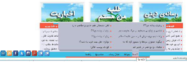 با بردن موس روی هر یک از عناوین صفحات ویژه، ده مورد از تازه‌ترین مطالب صفحه مربوطه نمایش داده می‌شود. (تصویر شماره ۲)