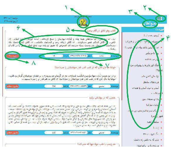 ۵- عنوان هر یک از مطالب