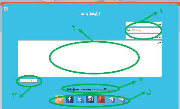 تصویر زیر صفحه «ازتباط با ما» را نشان می‌دهد.